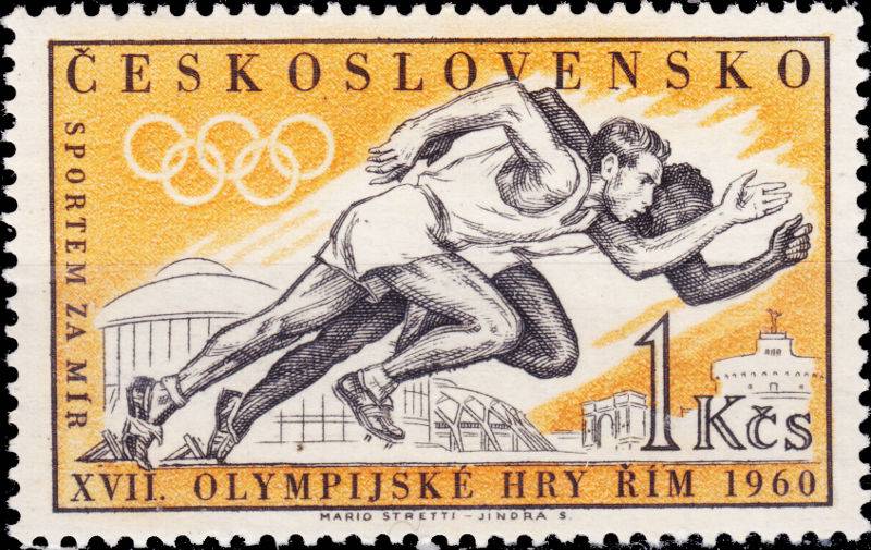Alte Briefmarken 1960 von der Tschechoslowakei zur Olympiade in Rom, den olympischen