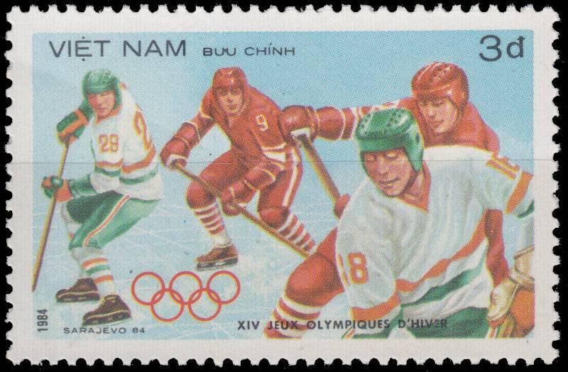 Briefmarken 1984 von Vietnam zur Olympiade in Sarajevo 1984. Vietnam liegt