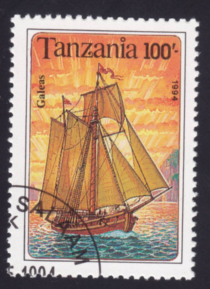 Tansania 1994, den ich noch besitze, diesmal zu Thema Schiffe speziell Segelschiffe von