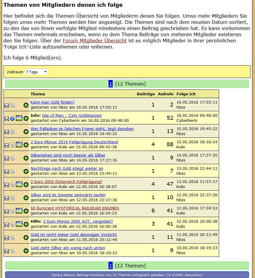 es existiert eine 'Folge dir'-Funktion im Münzenforum, Briefmarkenforum
