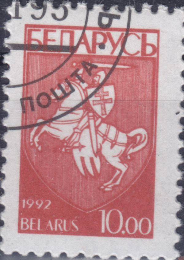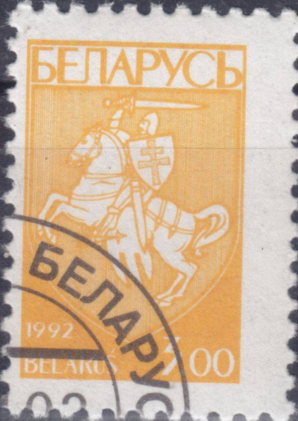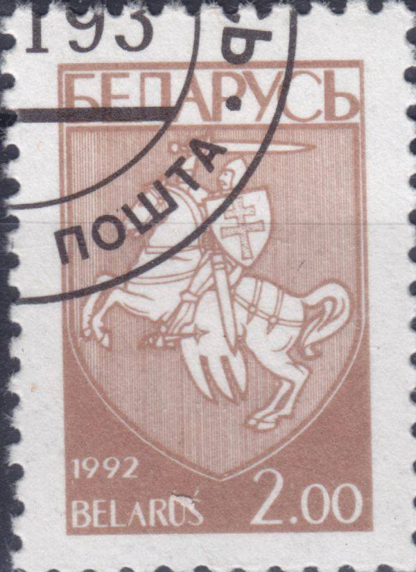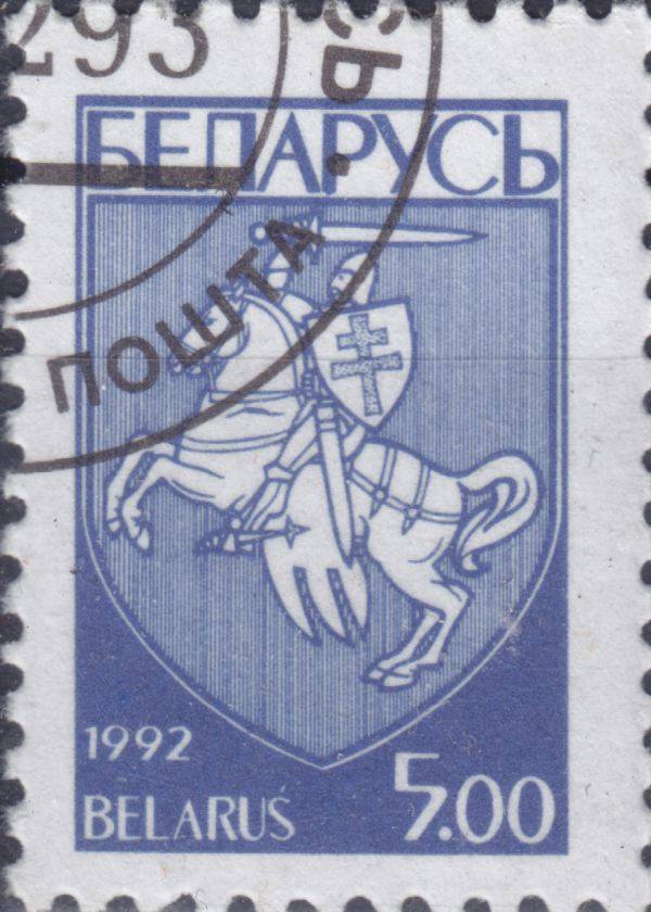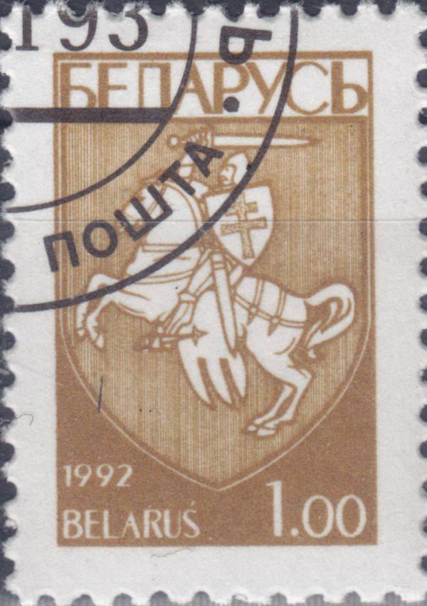 Briefmarken mit dem Staatswappen (Ritter auf Pferd) Weißrussland