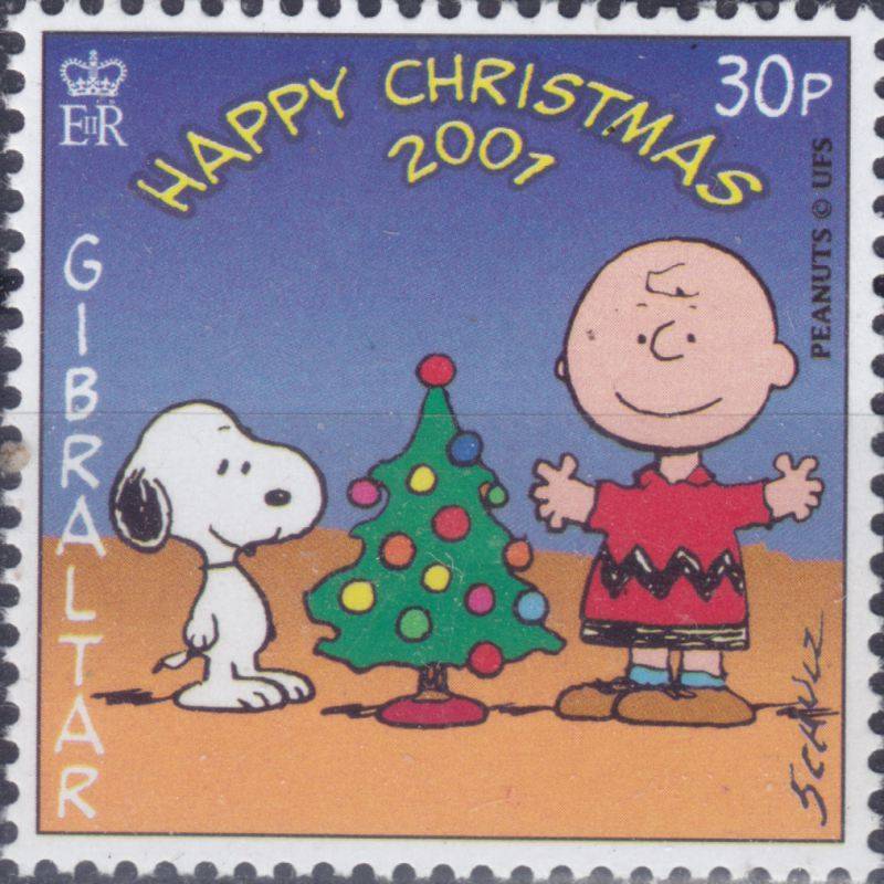 Briefmarken zu Weihnachten 2001 mit Snoopy von Gibraltar 2001: