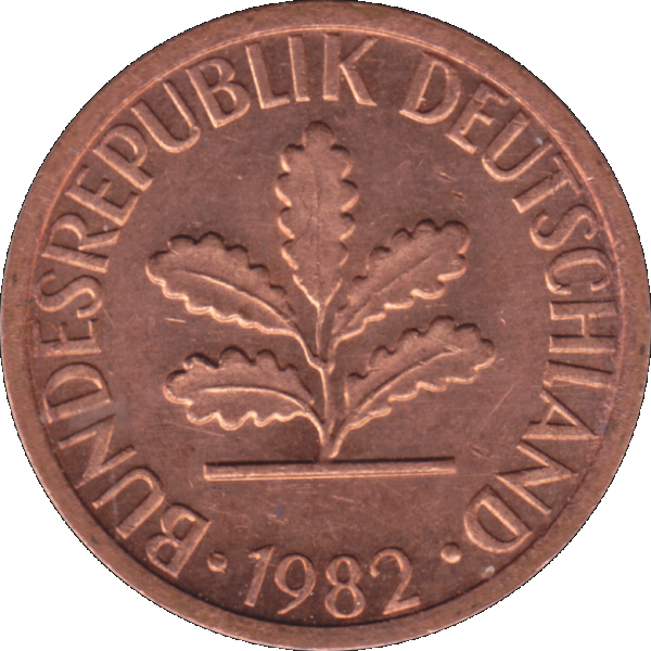 - Ein - 1 Pfennig 1982, 1980er Jahre Mzz. G für Karlsruhe (7).png